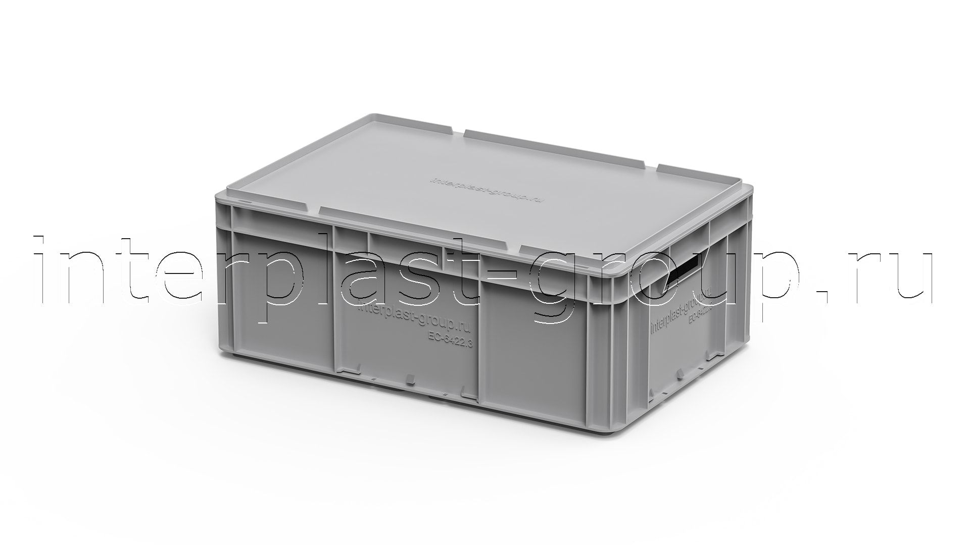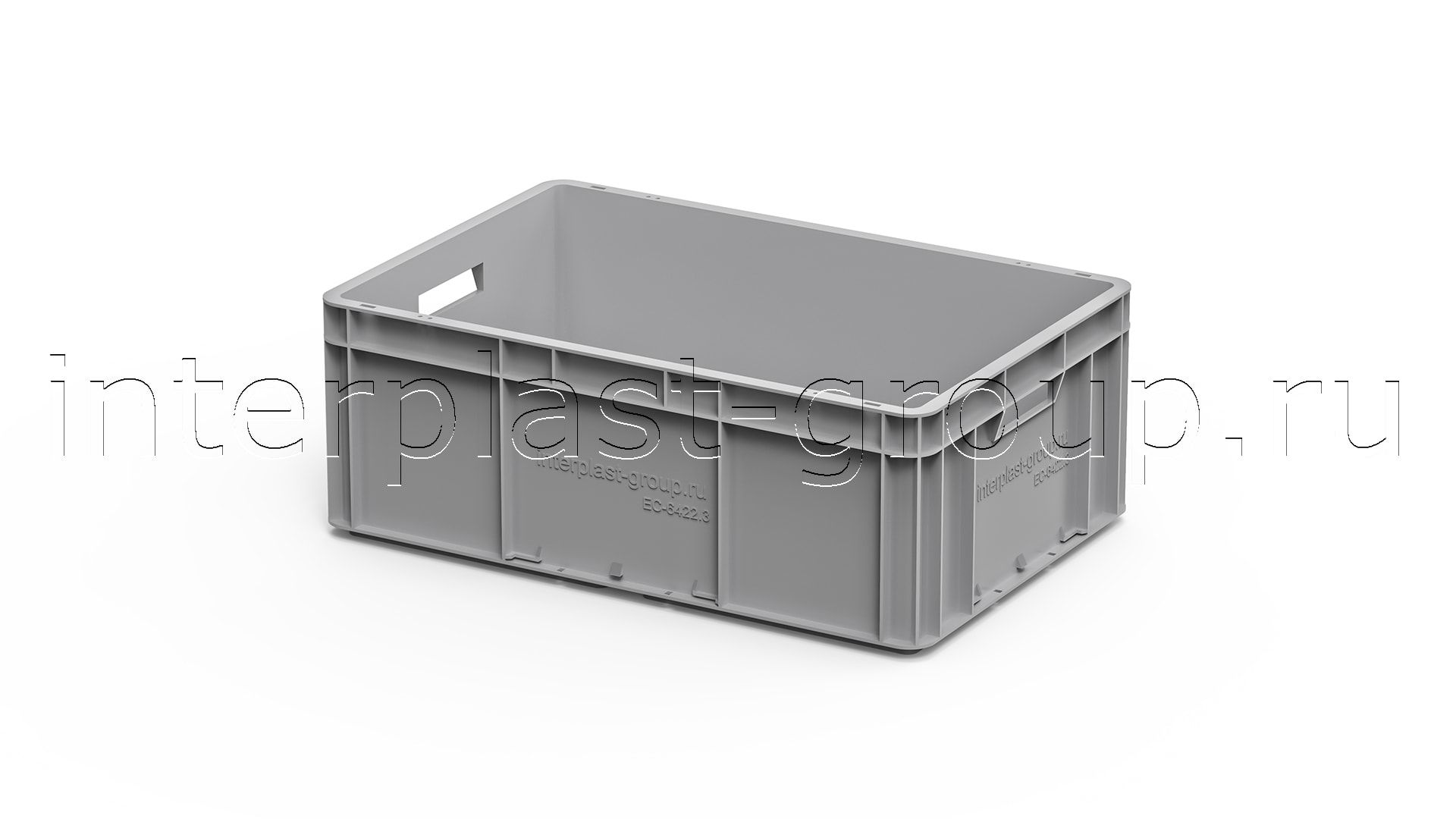 Евроконтейнер открытые ручки/усиленное дно (серый), 600x400x220 мм