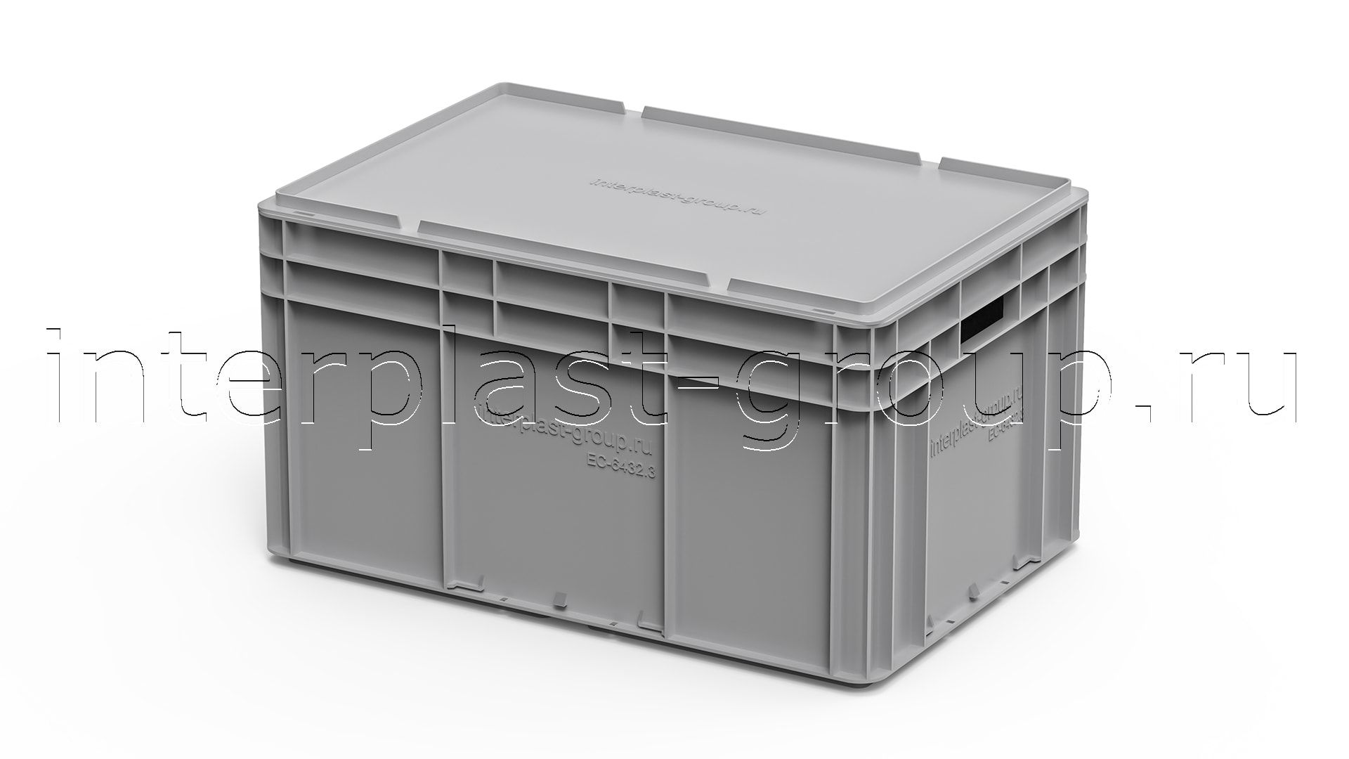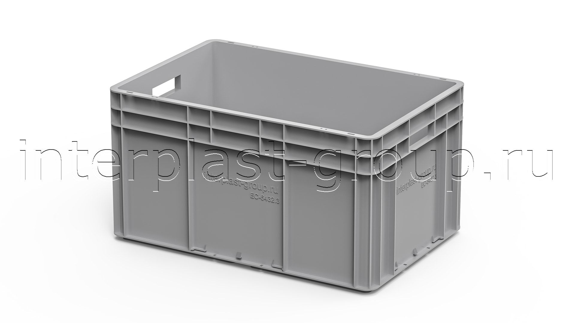 Евроконтейнер открытые ручки/усиленное дно (серый), 600x400x320 мм