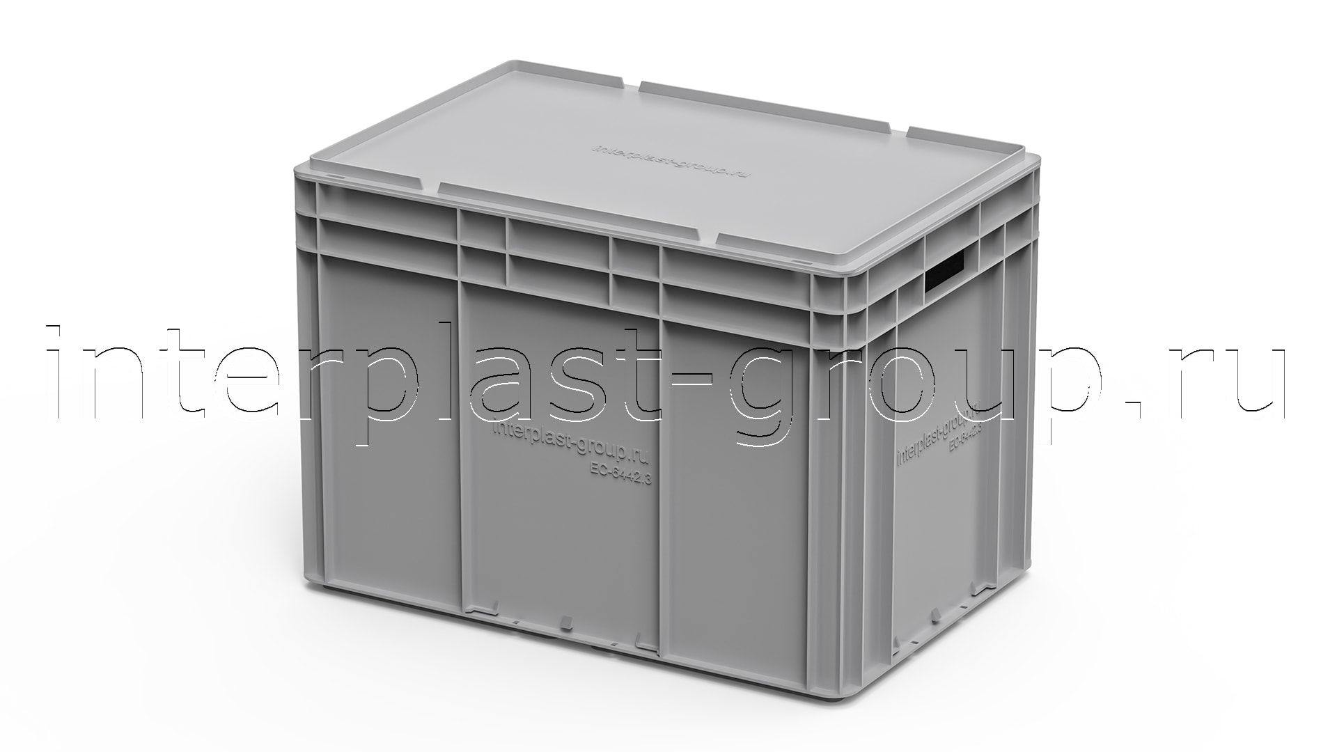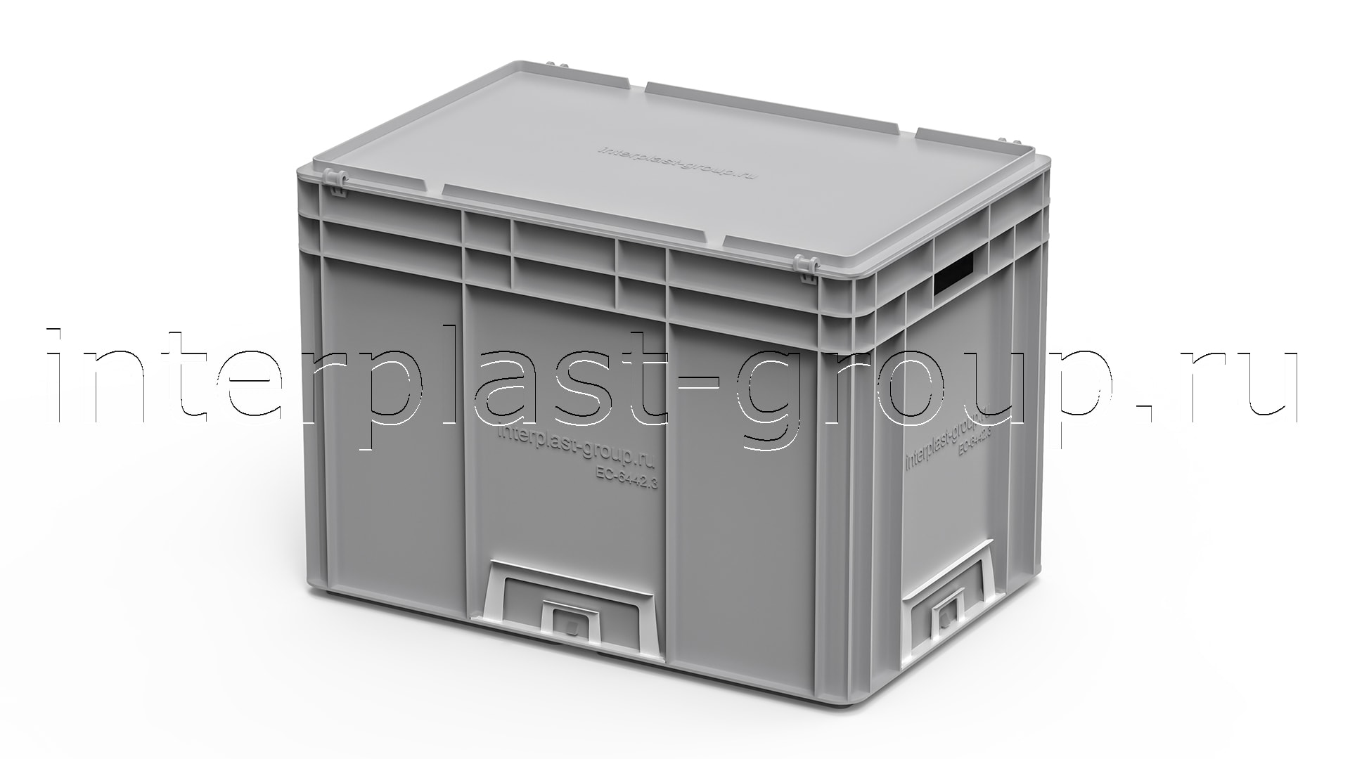 Евроконтейнер открытые ручки/усиленное дно (серый), 600x400x420 мм