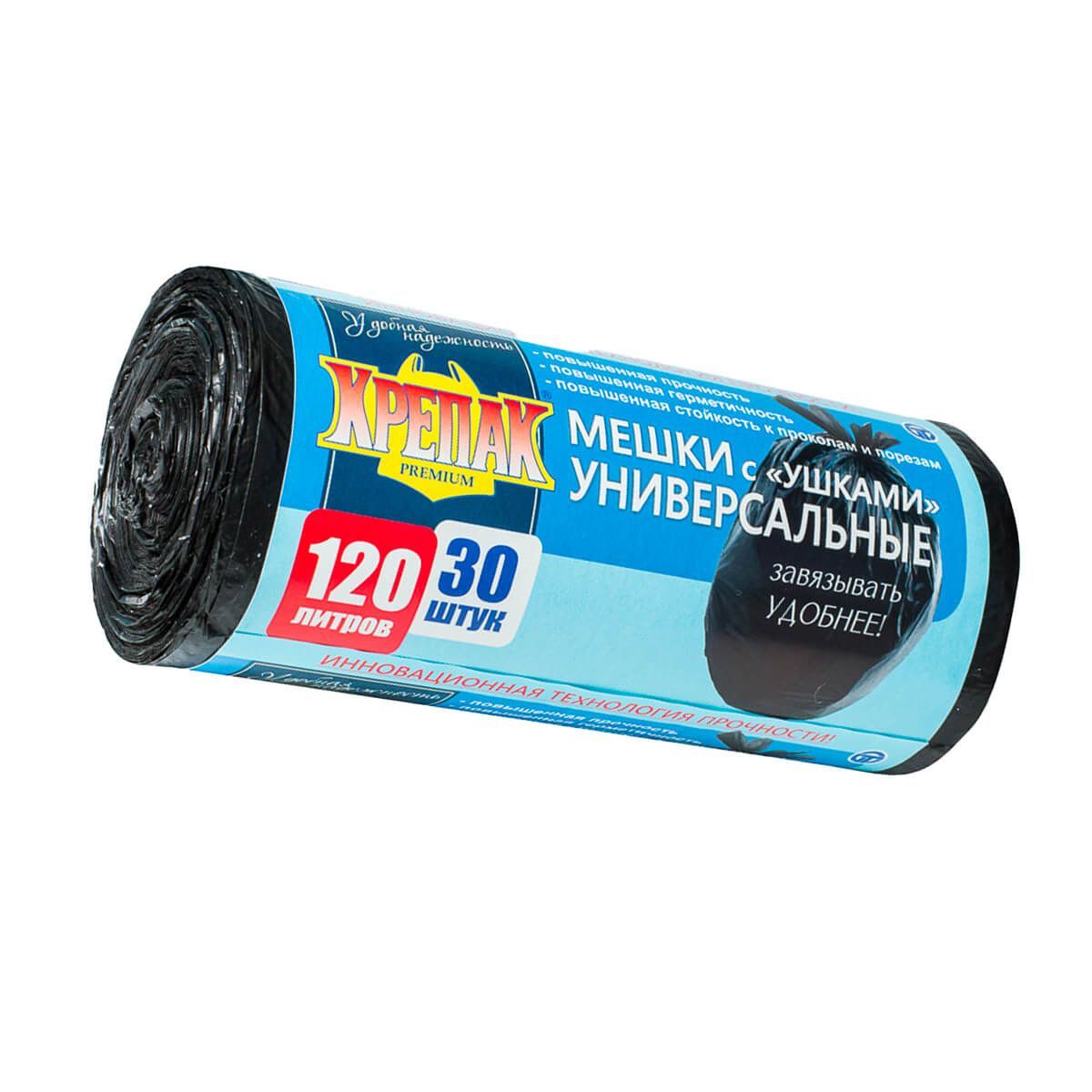 Сделайте свою уборку максимально удобной с мешками для мусора Крепак! В этом рулоне вы найдете 30 надежных черных мешков объемом 120 литров каждый, оборудованных удобными ушками для максимального комфорта использования. Эти мешки станут надежным решением для сбора крупных объемов мусора.