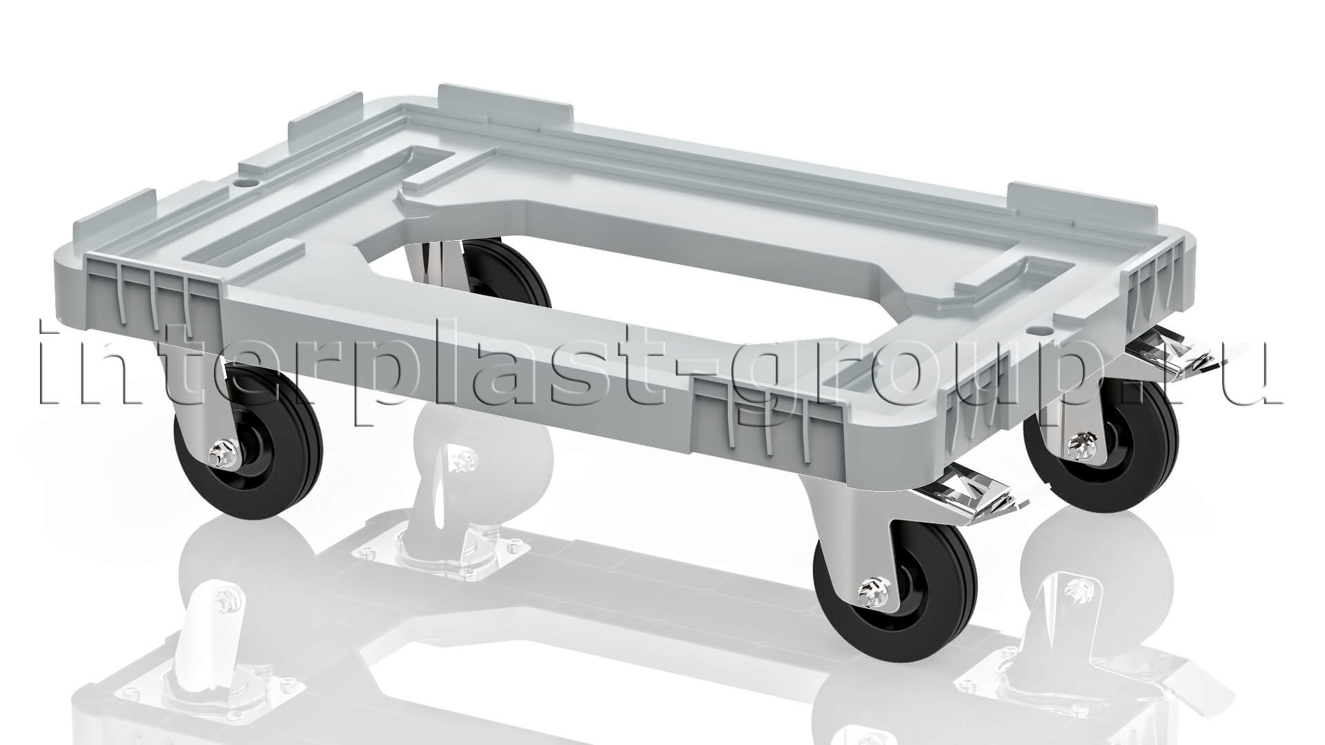 Тележка пластиковая с отверстием 2 колеса с тормозом серая в Норильске
