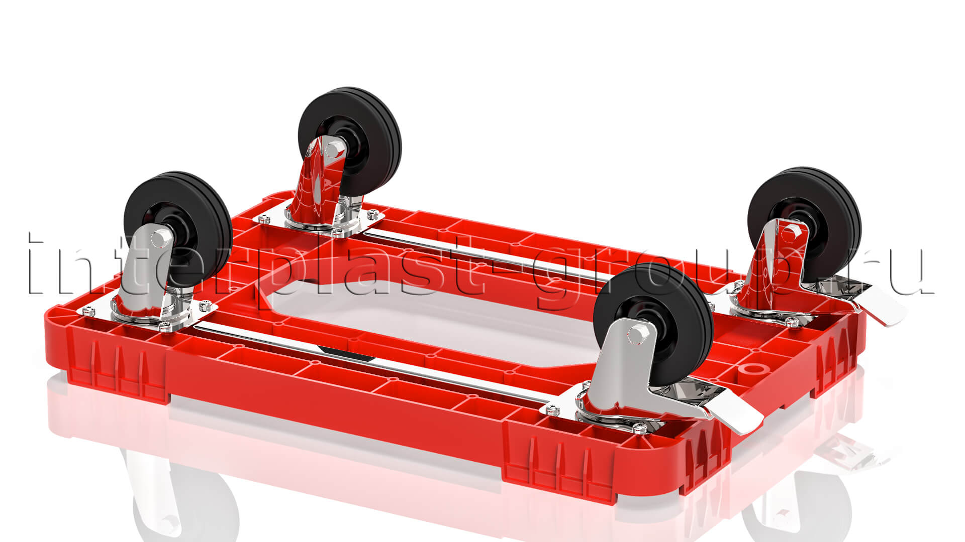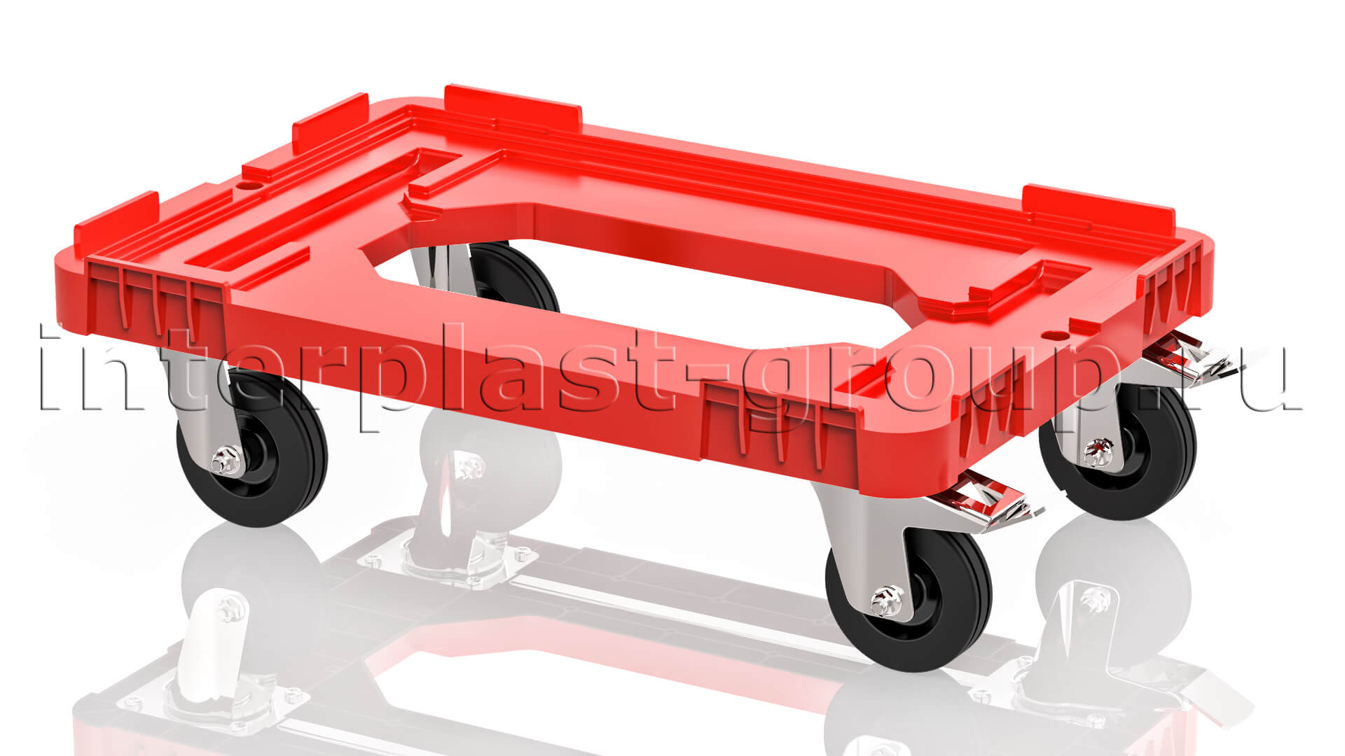Тележка пластиковая с отверстием 2 колеса с тормозом усиленная красная в Норильске